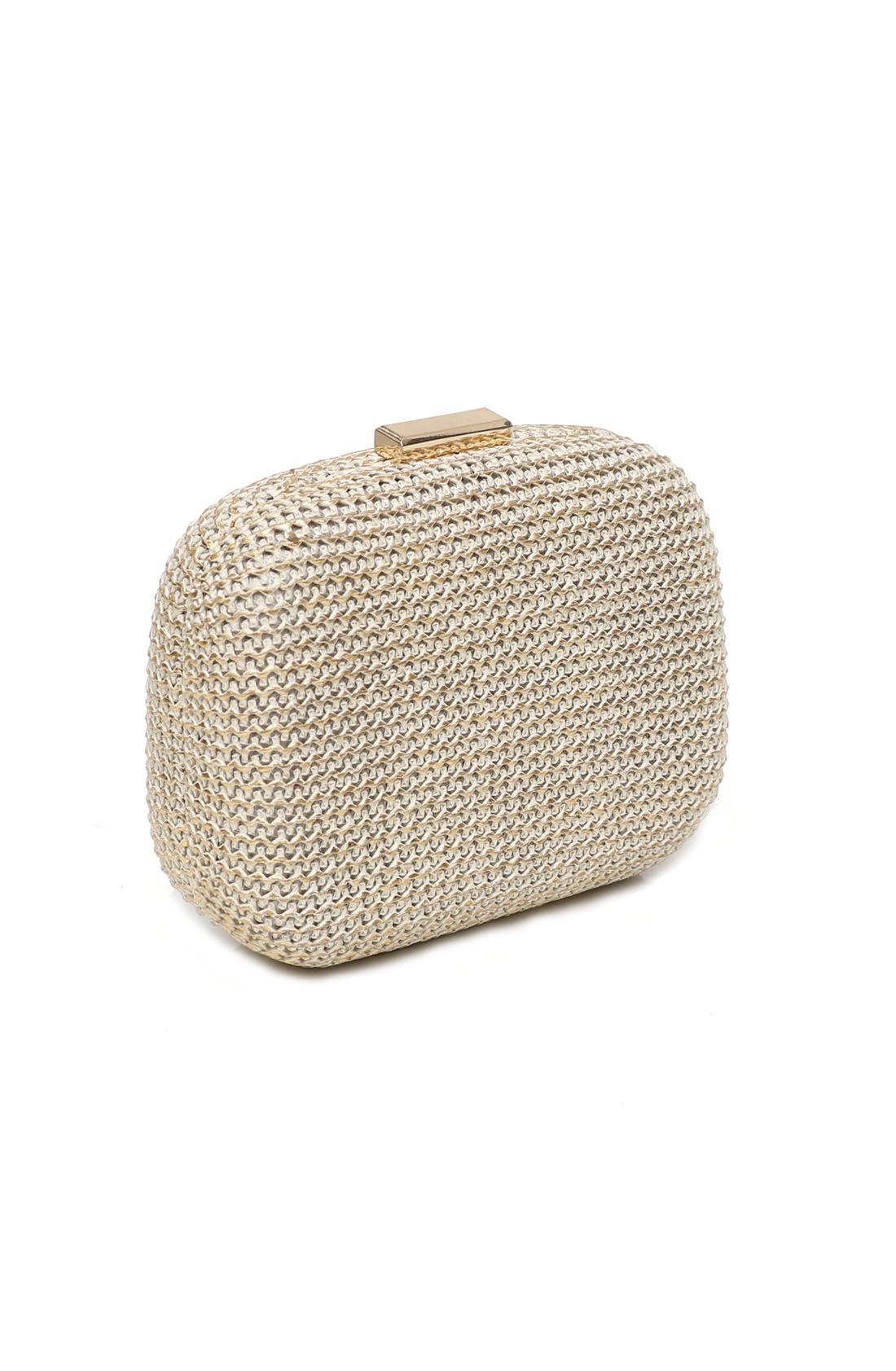 Carteira de Festa Palha com Fios Metalizados Dourado. Acompanha uma alça transversal de corrente e franja preto removível.